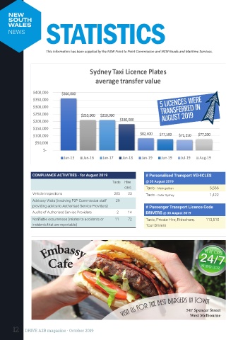 COMPLIANCE ACTIVITIES - for August 2019 # Personalised Transport VEHICLES