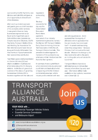 what is available in Australia and In summary it was a great forum Transport Alliance Australia is