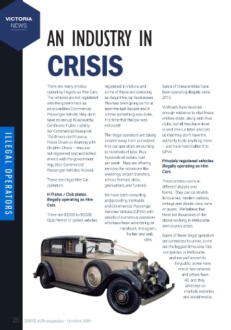 illegally operating as Hire and providing VicRoads limousines, modern sedans,