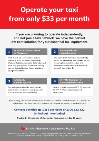 independent taxi for as little as $33 per month. Compare the savings in overhead costs!