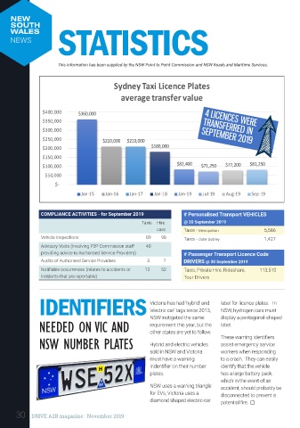 COMPLIANCE ACTIVITIES - for September 2019 # Personalised Transport VEHICLES
