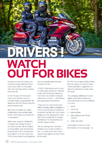 All drivers and riders are urged Victoria, and the risk is heightened 2. cornering