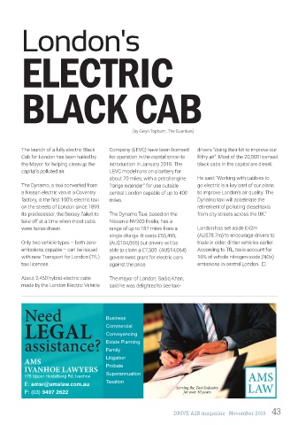 about 70 miles, with a petrol engine He said: “Working with cabbies to