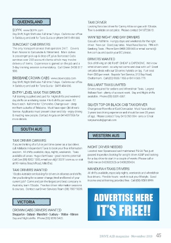 in Salisbury and ask for Tuna Guclu or phone 0419 484 666. WANTED NIGHT AND DAY DRIVERS