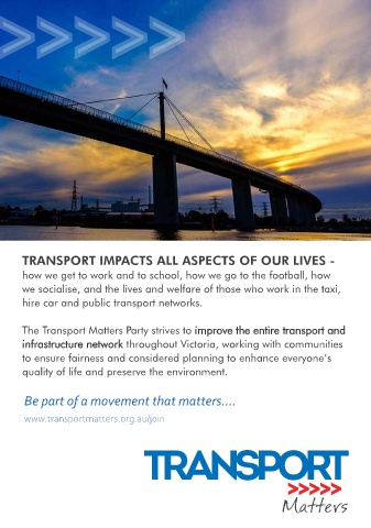 The Transport Matters Party strives to improve the entire transport and