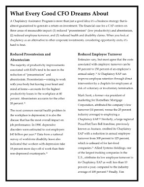 reduction of “presenteeism†and annual salary.19 A Chaplaincy EAP can