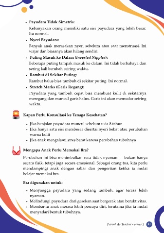 Menyangga payudara yang sedang tumbuh, agar terasa lebih