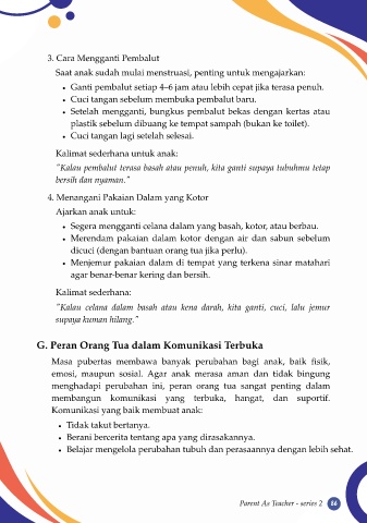 "Kalau pembalut terasa basah atau penuh, kita ganti supaya tubuhmu tetap