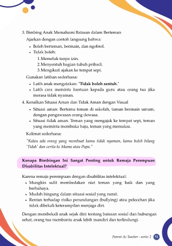 Dengan membekali anak sejak dini tentang batasan sosial dan hubungan