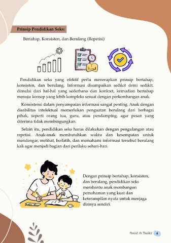 konsisten, dan berulang. Informasi disampaikan sedikit demi sedikit,