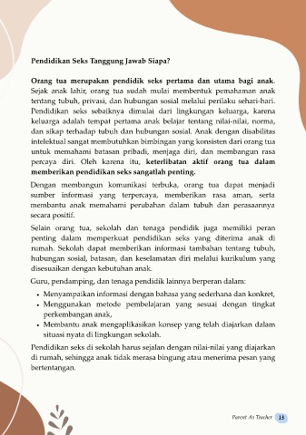 Orang tua merupakan pendidik seks pertama dan utama bagi anak.