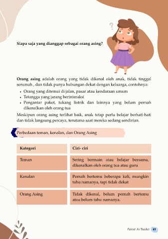 Orang asing adalah orang yang tidak dikenal oleh anak, tidak tinggal