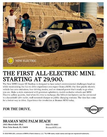 West Palm Beach, FL 33409 BramanMINI.com Iconic trim package which features asymmetric about the all-new 2020 MINI Cooper SE Electric.