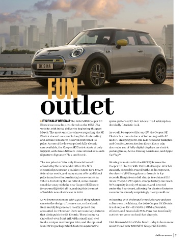 THE FIRST ALL-ELECTRIC MINI. website, with initial deliveries beginning this past As would be expected for any EV, the Cooper SE