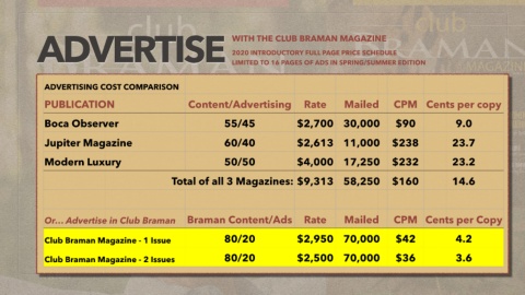 Club Braman Magazine - 2 Issues                                                                                                     80/20                                                $2,500 70,000                                                           $36                                         3.6