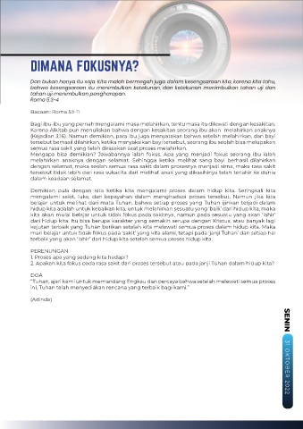 mari belajar untuk tidak fokus pada ‘sakit’ yang kita alami, tetapi pada ‘janji Tuhan’ dan setiap hal