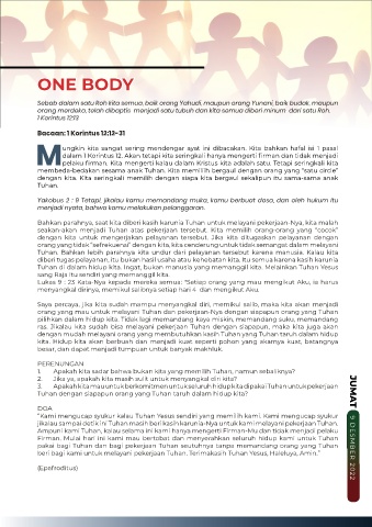Mpelaku firman. Kita mengerti kalau dalam Kristus kita adalah satu. Tetapi seringkali kita