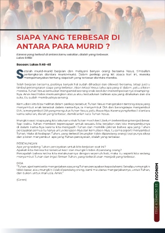 kamu sekalian, dialah yang terbesar, demikianlah kata Tuhan Yesus.