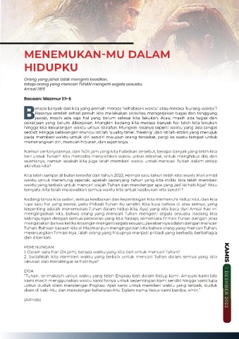 1. Dalam satu hari (24 jam), berapa waktu yang kita beri untuk mencari Tuhan? KAMIS