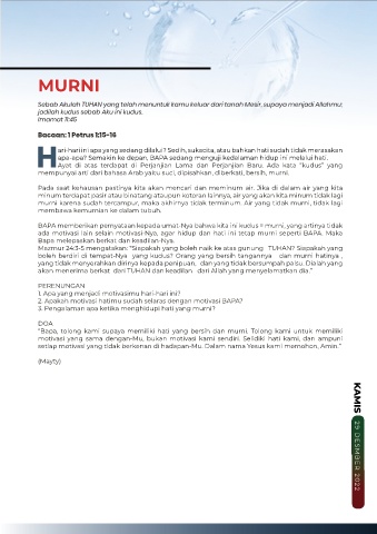 BAPA memberikan pernyataan kepada umat-Nya bahwa kita ini kudus = murni, yang artinya tidak