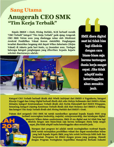 “CEO Terbaik” kategori “Tim Kerja Terbaik” pada ajang Anugerah SMK diera digital