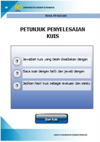 27 UNIVERSITAS NEGERI SURABAYA SOAL EVALUASI MODUL PENGAMBILAN GAMBAR PRODUKSI