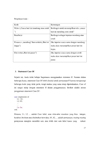 Else write(„Hari ini panas‟) Jika inputan cuaca sama dengan cerah