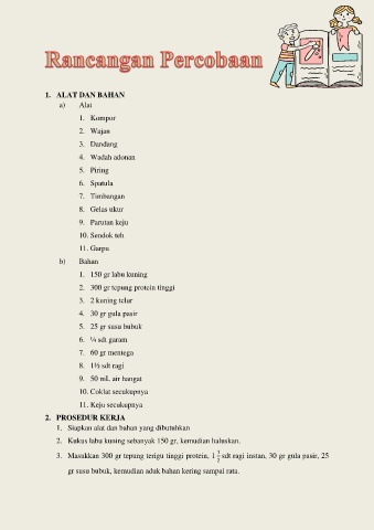gr susu bubuk, kemudian aduk bahan kering sampai rata.