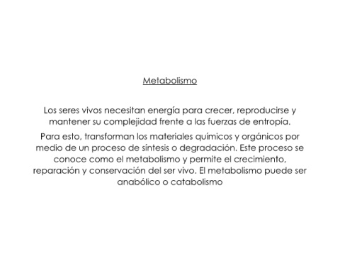 reparación y conservación del ser vivo. El metabolismo puede ser