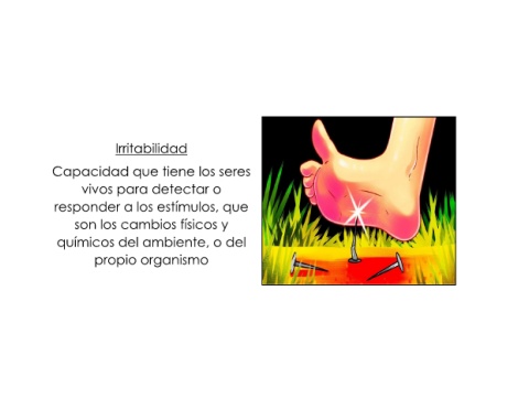Irritabilidad Capacidad que tiene los seres vivos para detectar o responder a los estímulos, que son los cambios físicos y químicos del ambiente, o del propio organismo