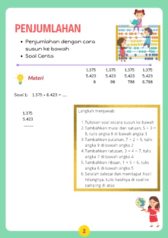 2. Tambahkan mulai dari satuan, 5 + 3 =