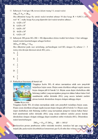 11 Sebanyak 5 mol gas AB terurai dalam ruang 1 L sesuai reaksi: