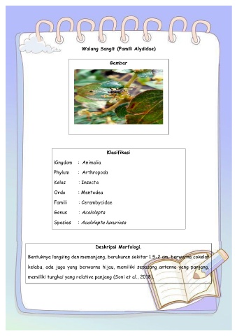 kelabu, ada juga yang berwarna hijau, memiliki sepasang antenna yang panjang,
