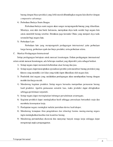 barang dengan biaya produksi yang lebih murah dibandingkan negara lain disebut dengan