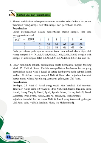 diperoleh ruang sampel S={Adam, Idris, Nuh, Hud, Shalih, Ibrahim, Luth,