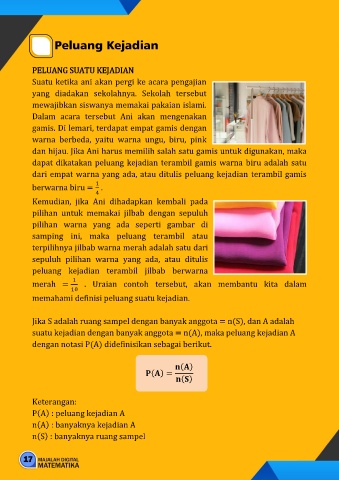 dari empat warna yang ada, atau ditulis peluang kejadian terambil gamis