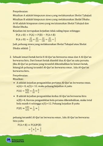 hitunglah peluang terambil Al-Qur’an berwarna emas , lalu Al-Qur’an