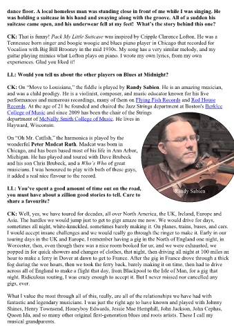 CK: That is funny! Pack My Little Suitcase was inspired by Cripple Clarence Lofton. He was a
