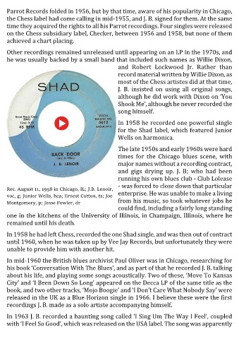 Parrot Records folded in 1956, but by that time, aware of his popularity in Chicago,