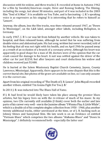 discussion with his widow, and three tracks J. B. recorded at home in Autumn 1962