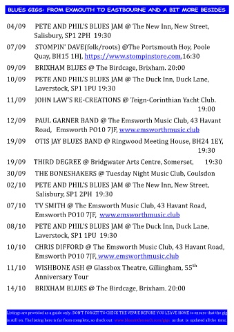 BLUES GIGS: FROM EXMOUTH TO EASTBOURNE AND A BIT MORE BESIDES