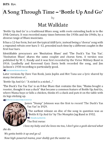 ‘Bottle Up And Go’ is a traditional Blues song, with roots extending back in to the