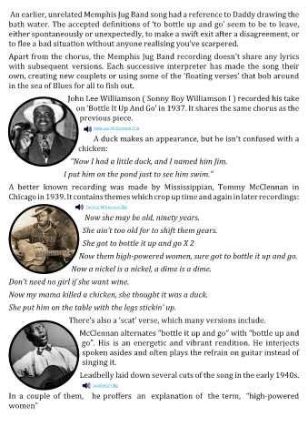 Apart from the chorus, the Memphis Jug Band recording doesn’t share any lyrics