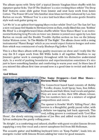 The album opens with ‘Dirty Girl’ a typical Jimmie Vaughan blues shuffle with his