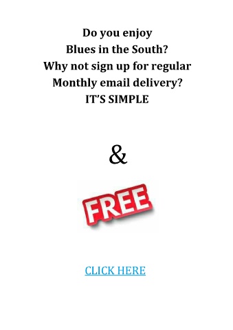 Do you enjoy Blues in the South? Why not sign up for regular Monthly email delivery? IT’S SIMPLE & CLICK HERE