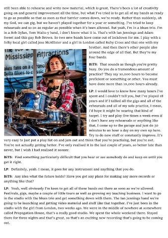 rehearsals and so on as regular as possible when it’s been allowed. But yeah, I’m in a blues trio. I’m