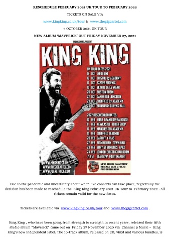 Tickets are available via www.kingking.co.uk/tour and www.thegigcartel.com .