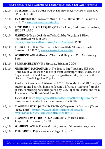 BLUES GIGS: FROM EXMOUTH TO EASTBOURNE AND A BIT MORE BESIDES
