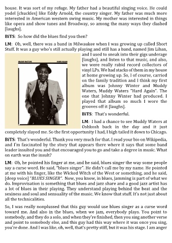 LM: Oh, he pointed his finger at me, and he said, blues singer the way some people