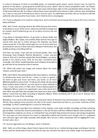 a Memphis Minnie song in her apartment. I was really struck by it,